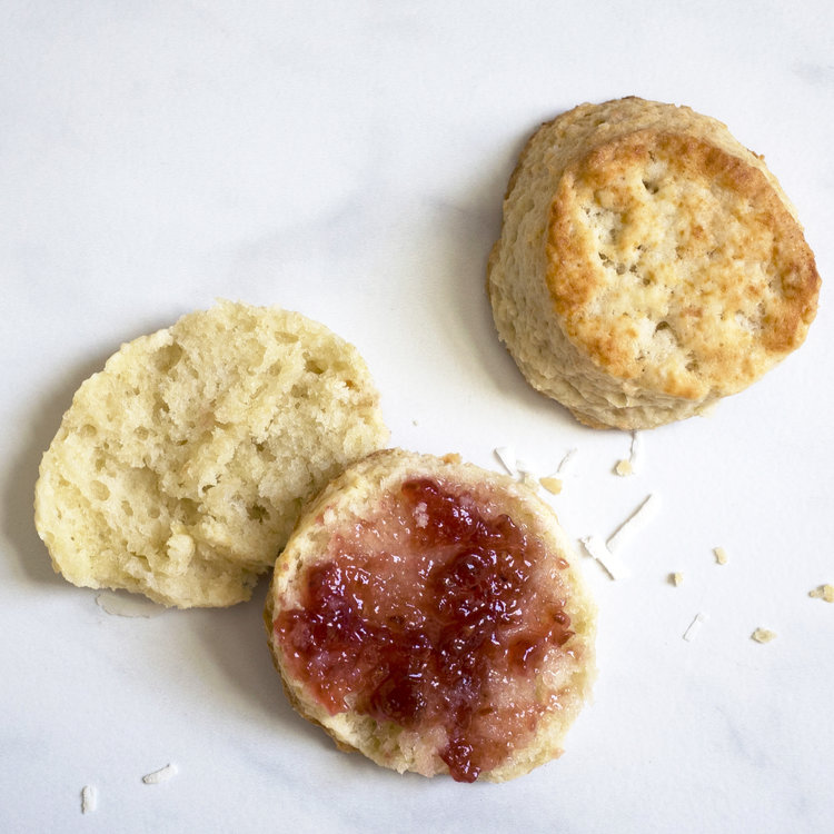These toasted coconut biscuits are reminiscent to scones, but since I’m Southern, they are unquestionably biscuits made with my grandmother’s biscuit cutter. They pair perfectly with honey, jam, or lemon curd, and the coconut flavor and texture is so fragrant and unexpected.