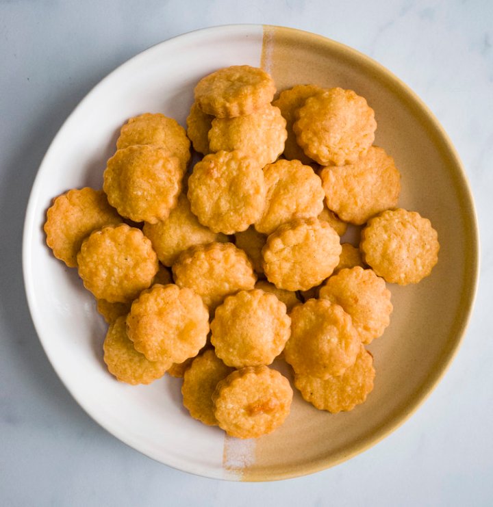 Cheese crackers (also known as cheese straws, wafers, or biscuits) are a true Southern classic and have long been a favorite snack for Southerners. They are most often present around holidays (especially Christmas), parties, and other special celebrations. Despite having a delicate appearance, cheese crackers are packed with flavor, spice, and have a melt-in-your-mouth texture yet remain crisp… probably from all the butter!